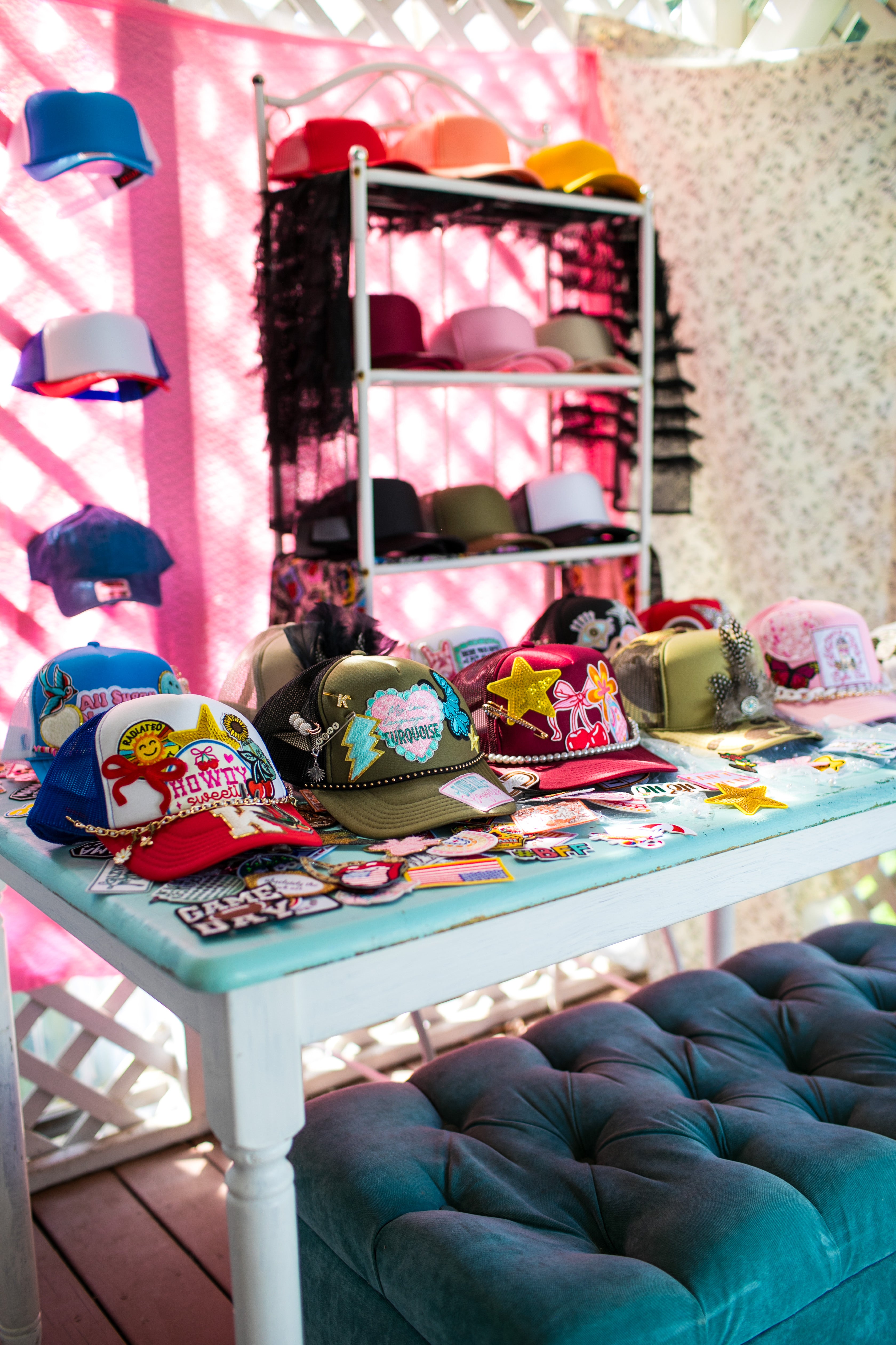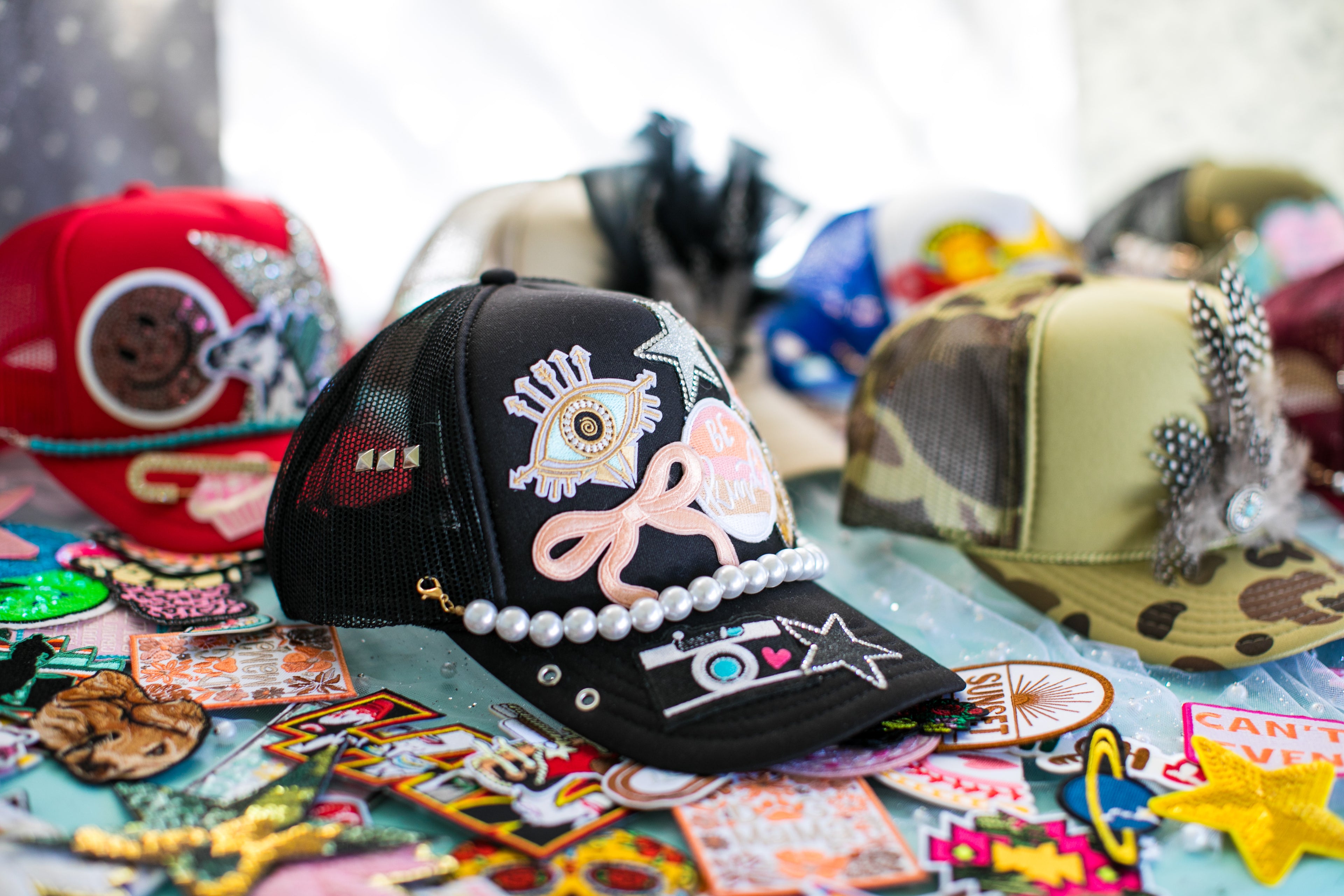 Magazine is a mobile custom trucker hat bar that brings bold style and creative fun to weddings, team retreats, bachelorettes, and celebrations of all kinds. Guests design their own hats with curated patches, luxe embellishments, and personalized flair—pressed on-site and ready to wear.